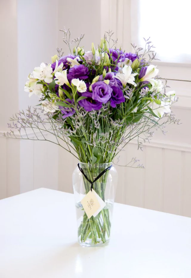 CREAMOS UN EXCLUSIVO ARREGLO CON un mix de lisianthus y altroemerias en dos tonos QUE Y SE PRESENTA EN FLORERO DE VIDRIO. NUESTROS ARREGLOS LLEGAN A TUS MANOS EN PAPELES DE SEDA, CAJAS Y PORTA RAMOS DE FLORES ONLINE. SON CREACIONES ORIGINALES, DISEÑADAS POR NUESTROS EXPERTOS, QUIENES LOGRAN ARMONÍA DE TAMAÑOS Y COLORES.